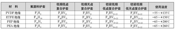 注:表中代号PVDF-聚偏二氟乙烯,ETFE-乙烯四氟乙烯共聚物,FEP-聚全氟乙丙烯