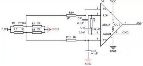下图是PT100的信号调理电路,我在产品上用的,大家可以参考一下。