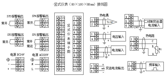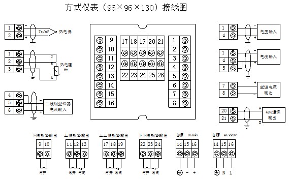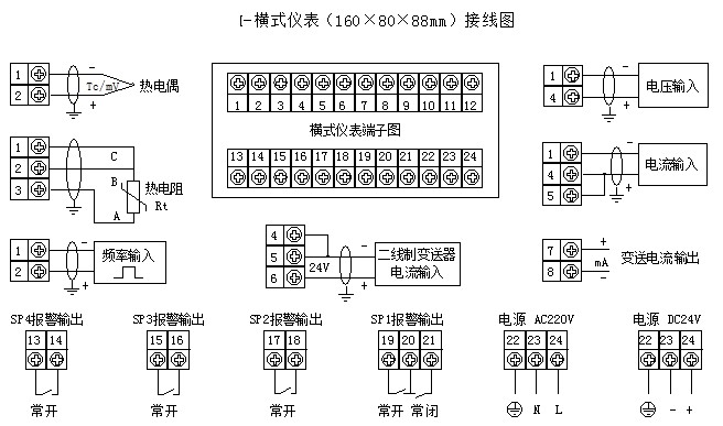 报警输出:二限报警或四限报警,报警方式、报警灵敏度可设置,继电器输出触点容量 AC220V/3A或AC220V/1A。