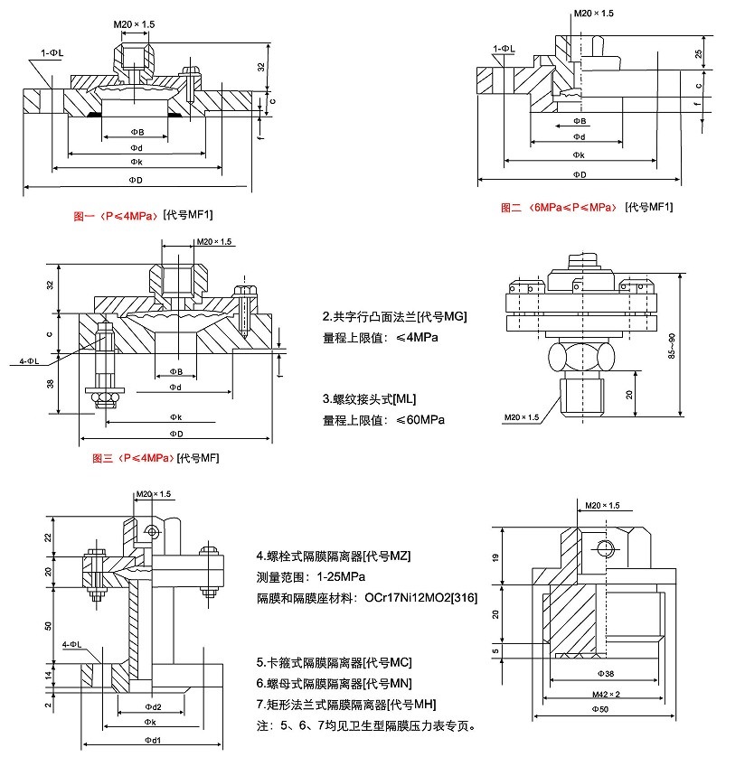 四、隔膜压力表仪表型式及尺寸