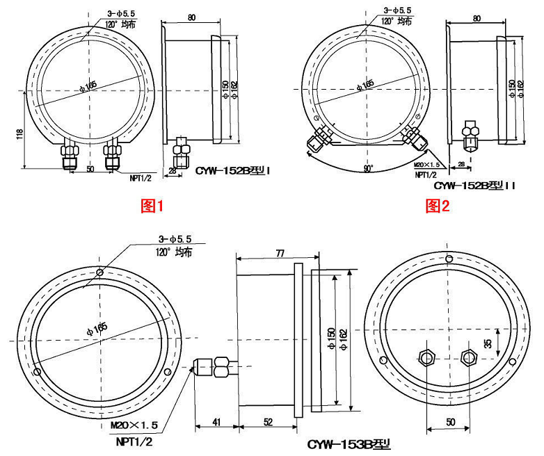 1、不锈钢差压表表盘直径:φ100mm;φ150mm