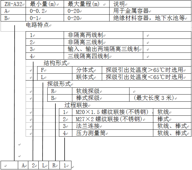 量程: 0-125~3000mm(杆式);缆式0~20m